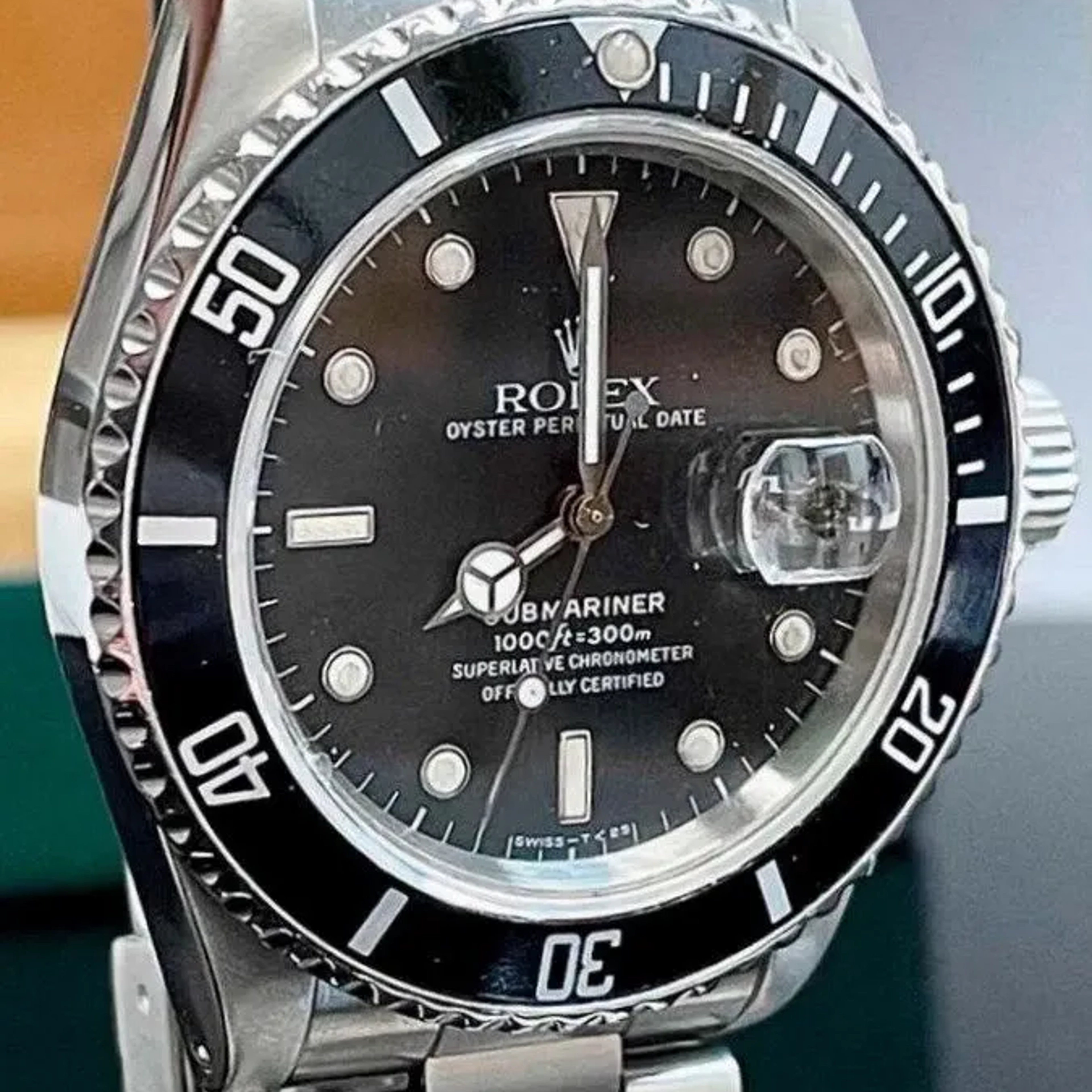 Furthermore, it had an official chronometer certificate, a green wallet with two instruction booklets and its original boxes.